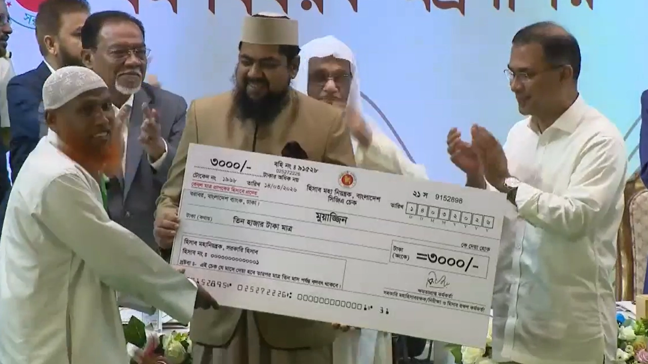 ইমাম, মুয়াজ্জিন, খাদেম ও অন্যান্য ধর্মীয় নেতৃবৃন্দের মাসিক সম্মানি প্রদান কার্যক্রমের উদ্বোধন করেছেন প্রধানমন্ত্রী তারেক রহমান।
