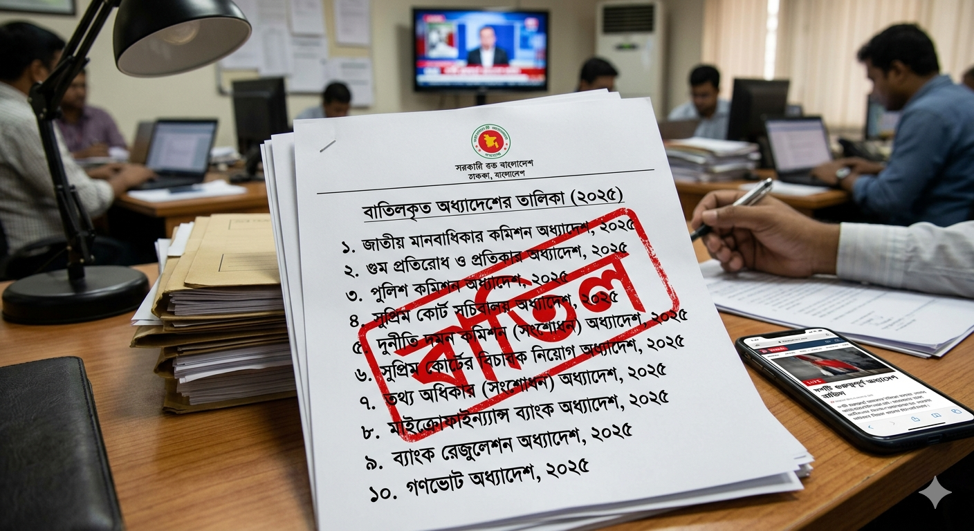 ২০২৫ সালে প্রবর্তিত বেশ কিছু গুরুত্বপূর্ণ অধ্যাদেশ বাতিল করার প্রক্রিয়া শুরু হয়েছে। সরকারি সিদ্ধান্তের প্রেক্ষিতে জাতীয় মানবাধিকার কমিশন অধ্যাদেশ এবং গুম প্রতিরোধ ও প্রতিকার অধ্যাদেশের মতো সংবেদনশীল আইনি কাঠামো বাতিলের তালিকায় স্থান পেয়েছে।
