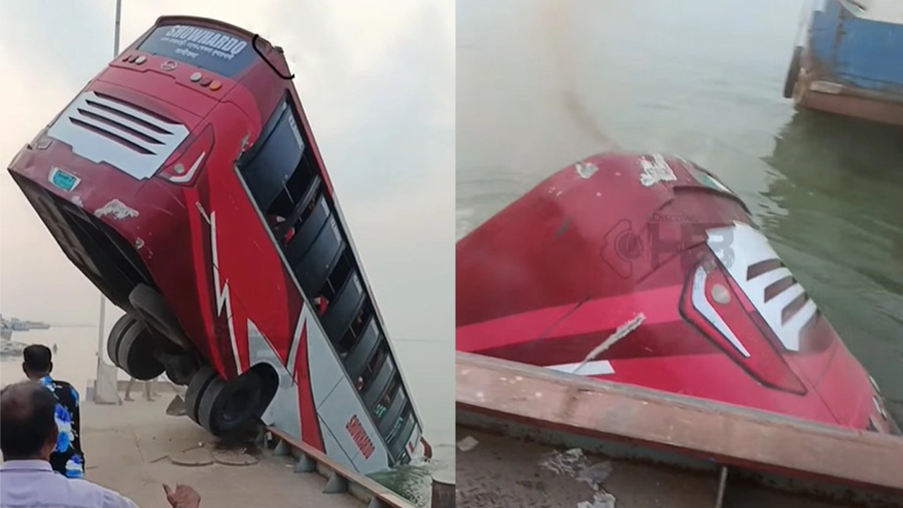 দৌলতদিয়া ফেরি ঘাটে দায়িত্বপ্রাপ্ত পরিবহনের ঘাট তত্ত্বাবধায়ক মো. মনির হোসেন বলেন, বিকাল ৫টার দিকে সৌহার্দ্য পরিবহনের বাসটি দৌলতদিয়ার ৩ নম্বর ঘাটে আসে। এ সময় ঘাটে থাকা একটি ফেরি মানিকগঞ্জের পাটুরিয়ার উদ্দেশে ছেড়ে যায়। অল্পের জন্য তাতে উঠতে না পারায় অপর ফেরির জন্য বাসটি ঘাটে অপেক্ষা করছিল। সোয়া ৫টার দিকে ওই ঘাটে ‘হাসনা হেনা’ নামক একটি ইউটিলিটি ফেরি আসে। ফেরিটি পন্টুনে সজোরে আঘাত করে। এ সময় বাসটিকে চালক নিয়ন্ত্রণ করতে না পারায় পদ্মা নদীতে পড়ে যায়।