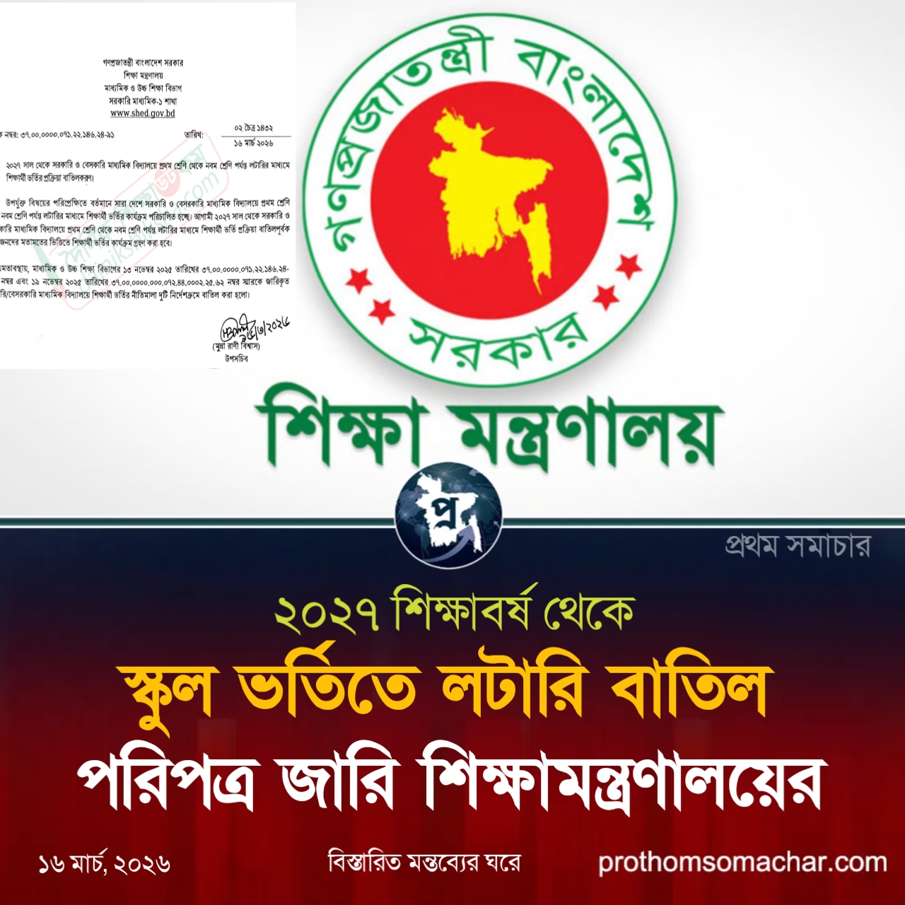 মন্ত্রণালয় থেকে জারি করা এই বিজ্ঞপ্তিতে স্পষ্ট করা হয়েছে যে, দীর্ঘদিনের লটারি প্রথা বিলুপ্ত করে একটি কার্যকর ও অংশীজনদের কাছে গ্রহণযোগ্য ভর্তি পদ্ধতি চালুর লক্ষ্যেই এই পরিবর্তন আনা হচ্ছে।