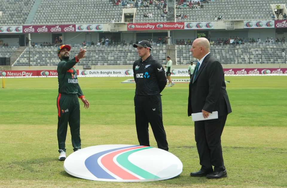 চট্টগ্রামের বীর শ্রেষ্ঠ ফ্লাইট লেফটেন্যান্ট মতিউর রহমান স্টেডিয়ামে অনুষ্ঠিত এই ম্যাচে নিউজিল্যান্ড অধিনায়ক টম ল্যাথাম টস জিতে ফিল্ডিং বেছে নেন।